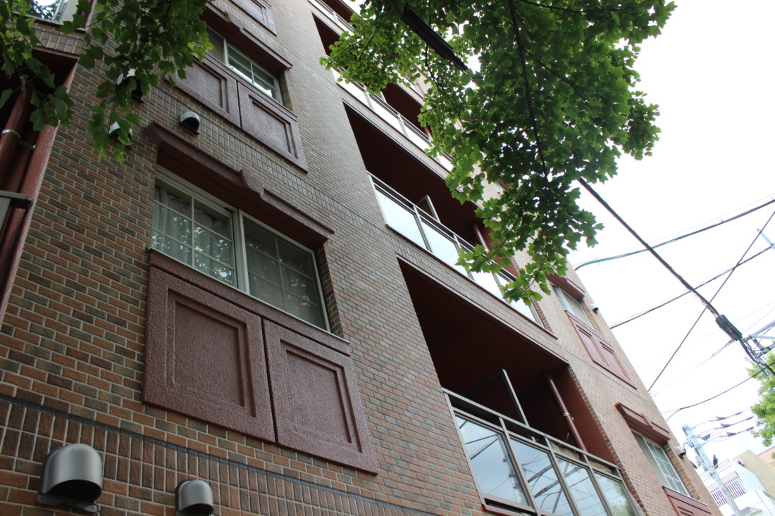 「え、もう着いた?」と軽く驚くくらい駅近の、白タイルのマンションです。