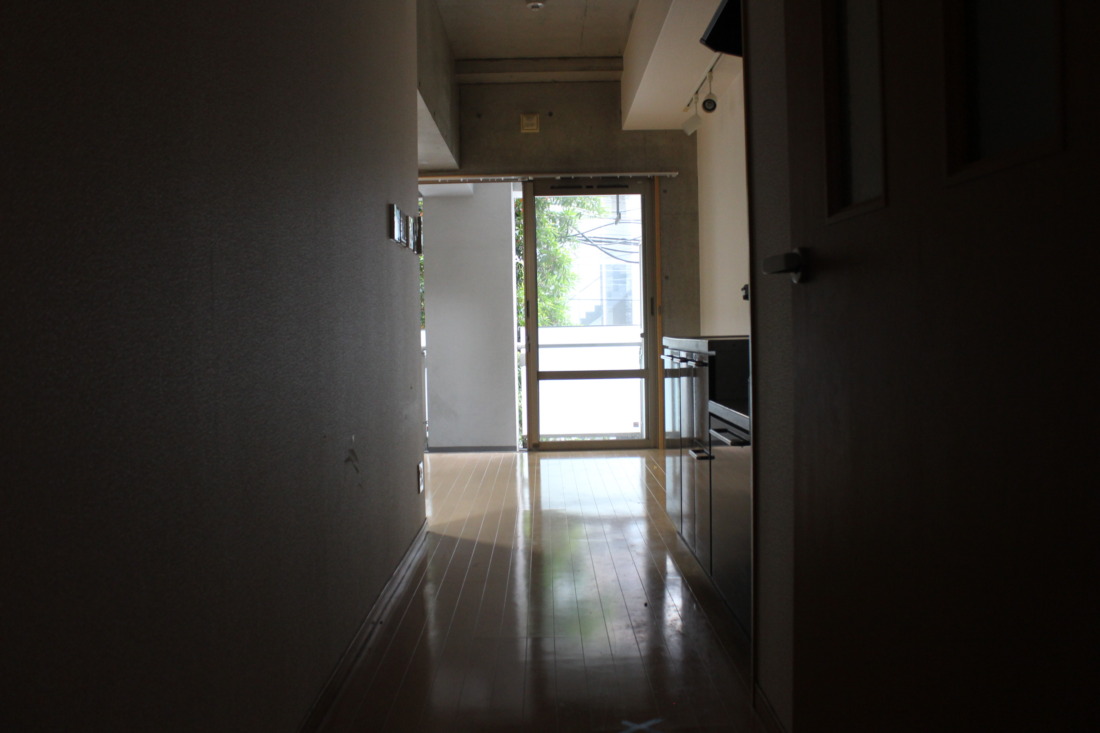 暗い廊下の先にドーンと緑が広がってて、