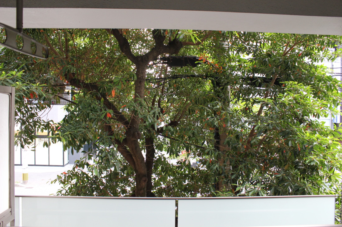 窓いっぱいに街路樹が広がる景色は、