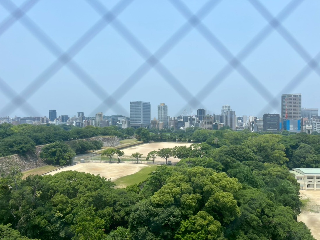 鹿鳴館跡、天守台跡、そして福岡城跡までも見渡せるという贅沢さ。