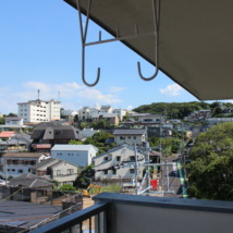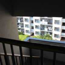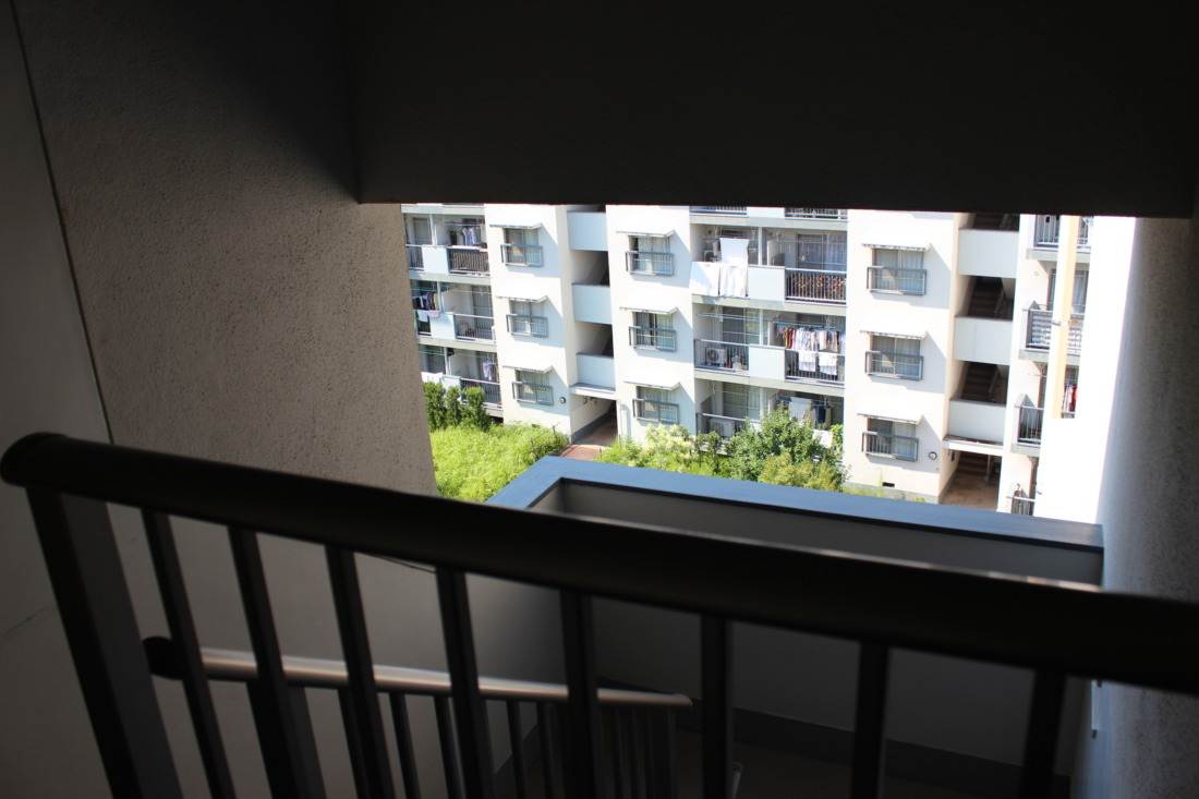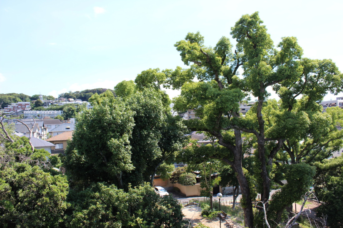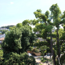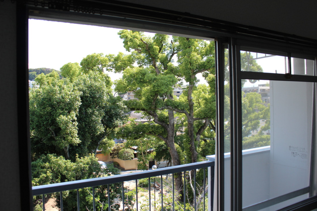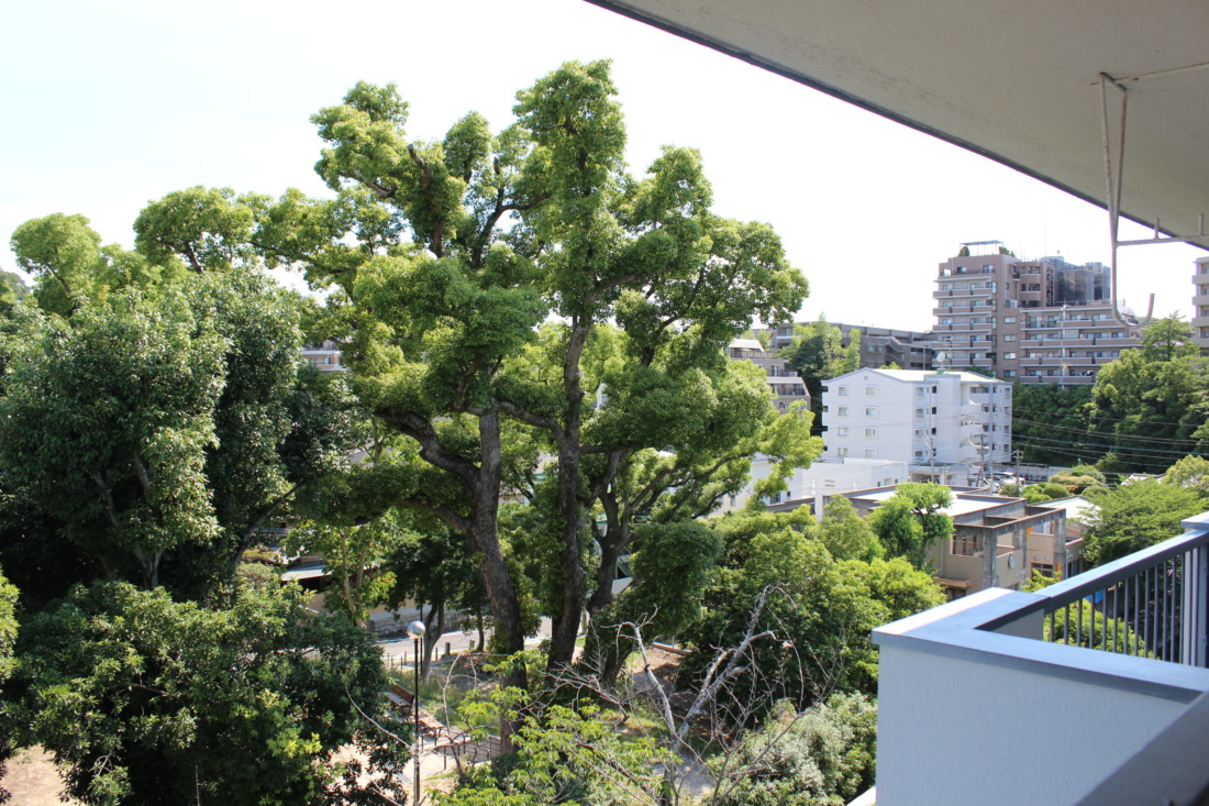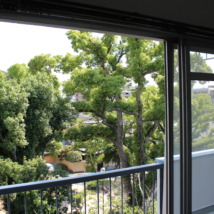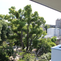 隣接する公園の楠木は、バルコニーから手が届きそうなくらい近くに。