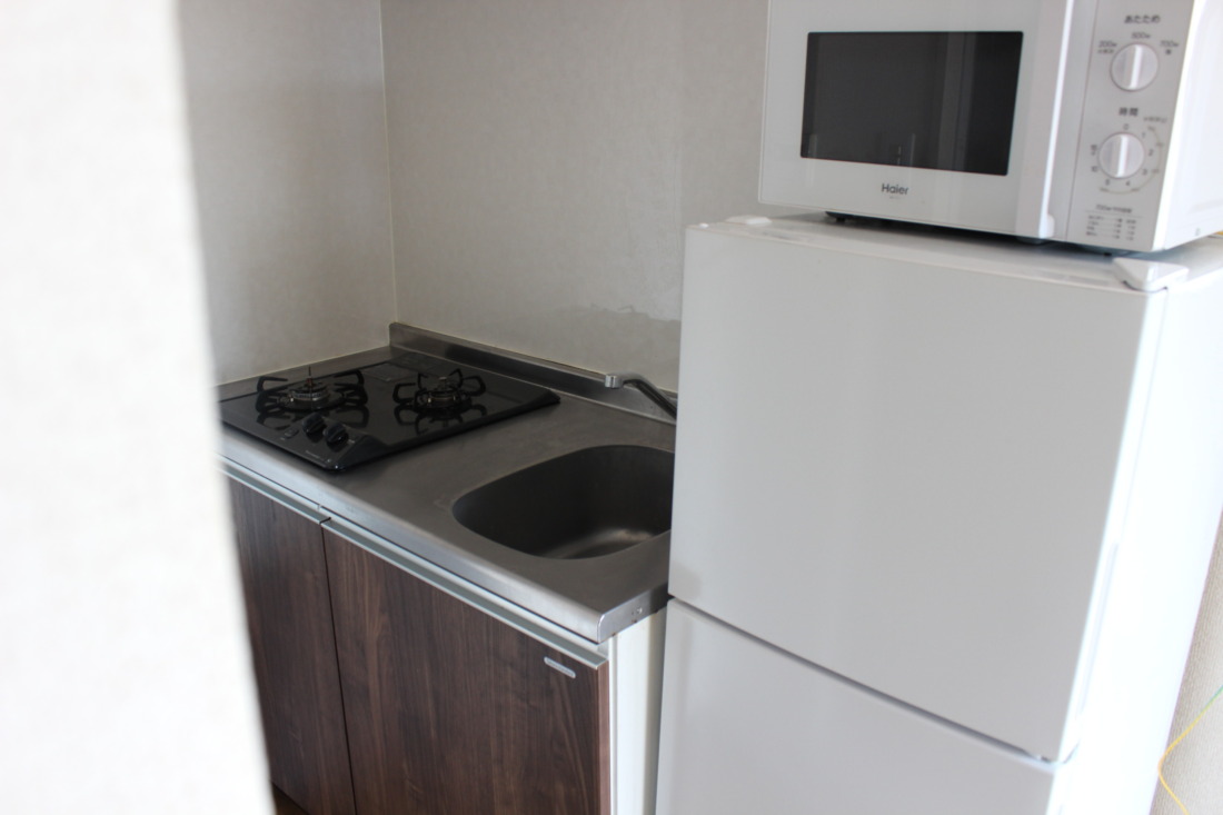 TV(台を含)・机セット・冷蔵庫・電子レンジ・エアコン・洋服棚・電灯、