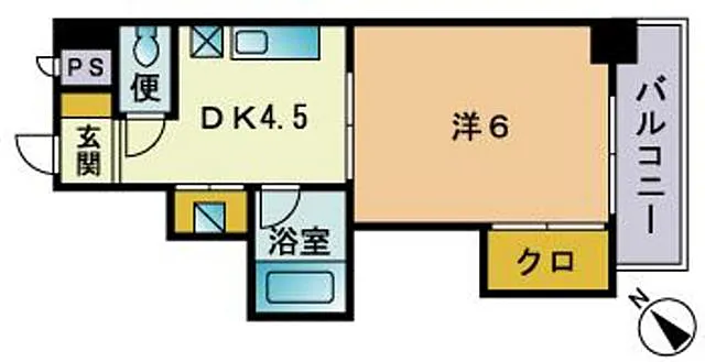 その奥に6帖のスペースが続く、間取り1DKの空間が広がります。