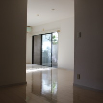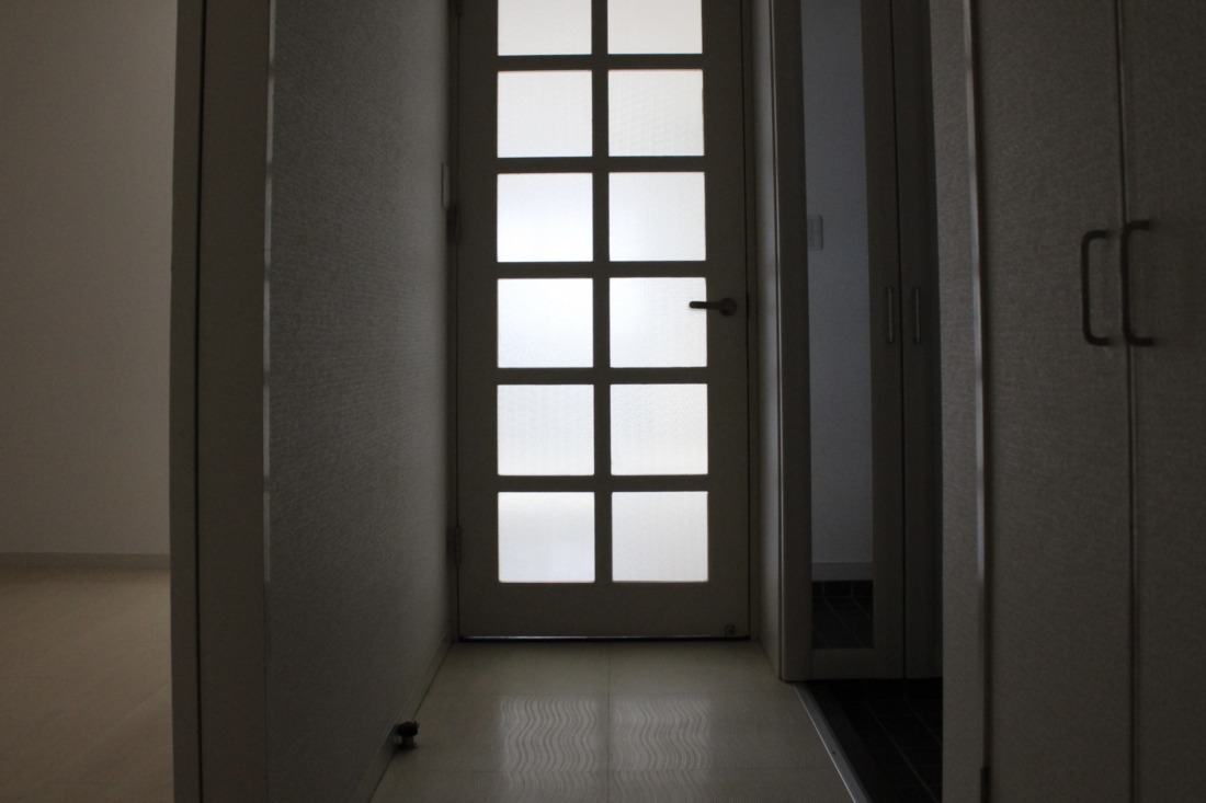白い床に揺れる木漏れ日、そして壁にはどこからともなく反射した光が映り込み、