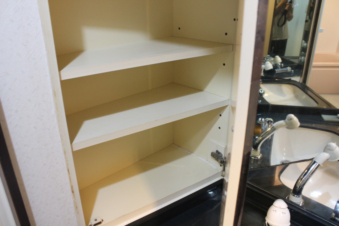 三面鏡の裏はしっかり収納になっており、使い勝手も抜群です。