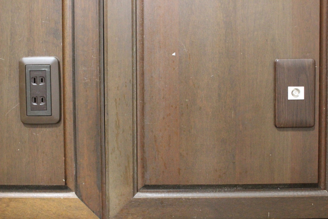 コンセントのデザインひとつにもこだわりを感じる室内は、