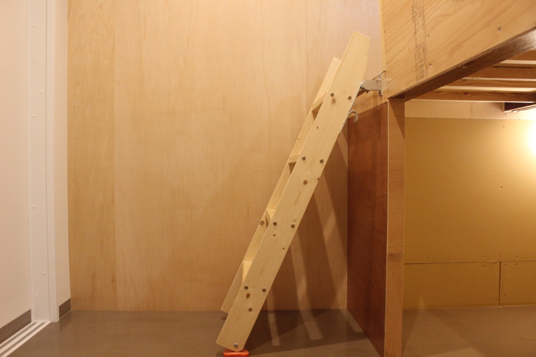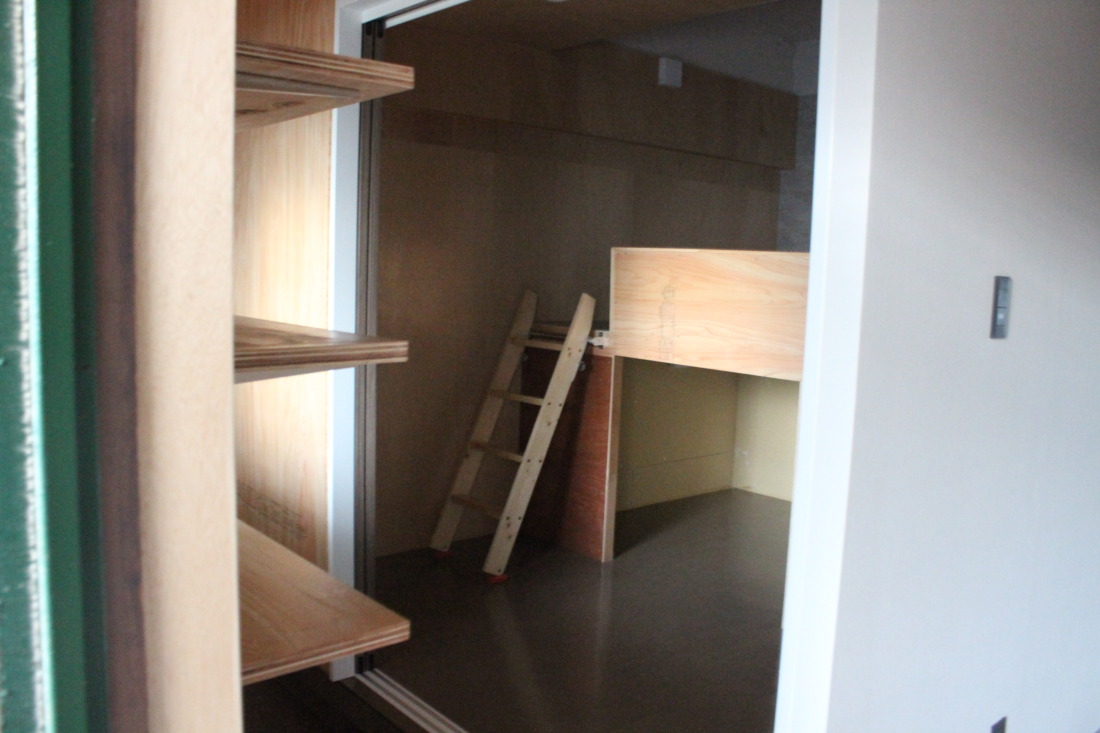 収納を兼ねた土間越しに、愛らしいロフトが目に入ります。