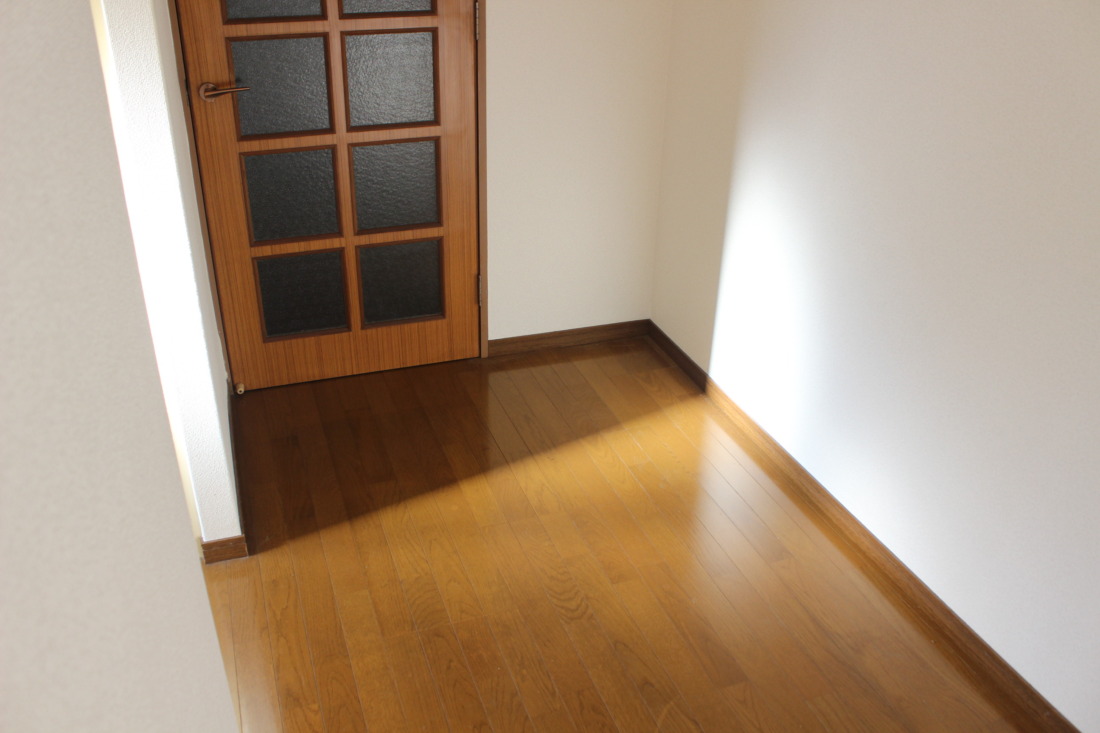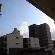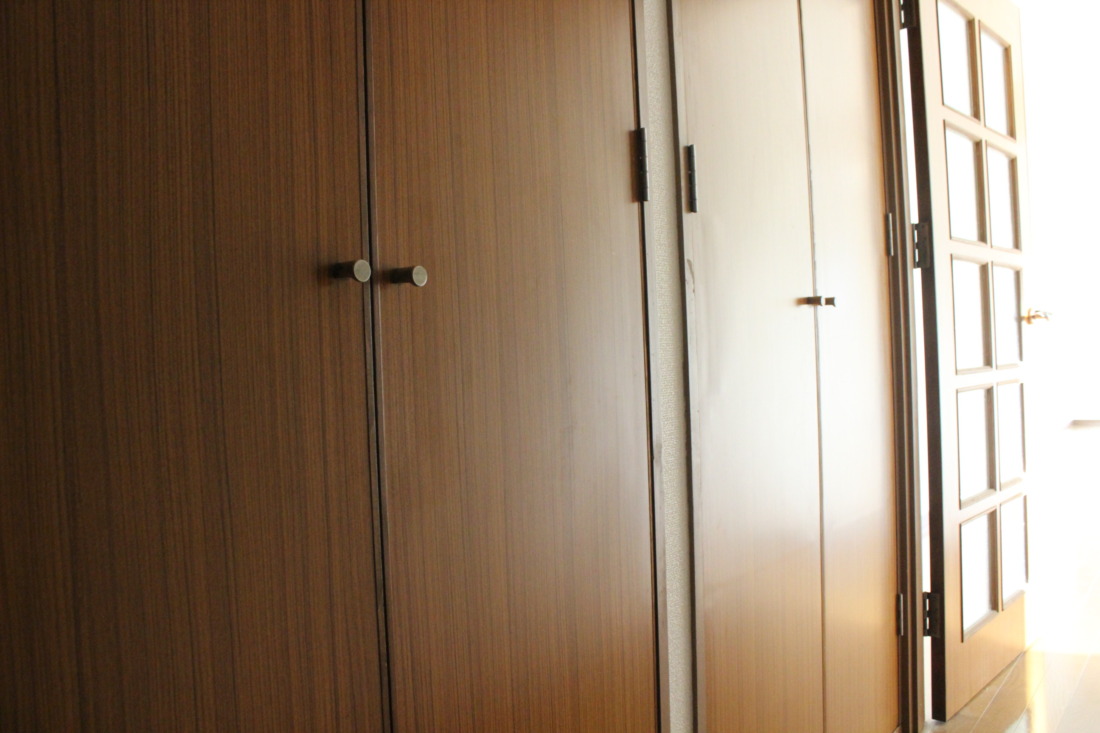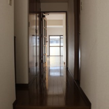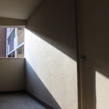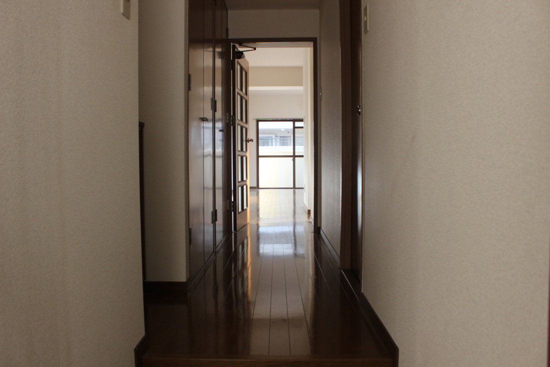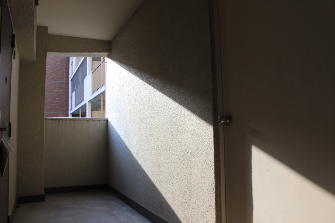 共用廊下に落ちるやわらかな影を横目に玄関をオープン。