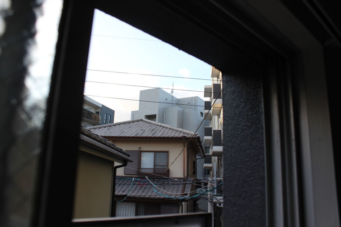 窓の外は住宅街。