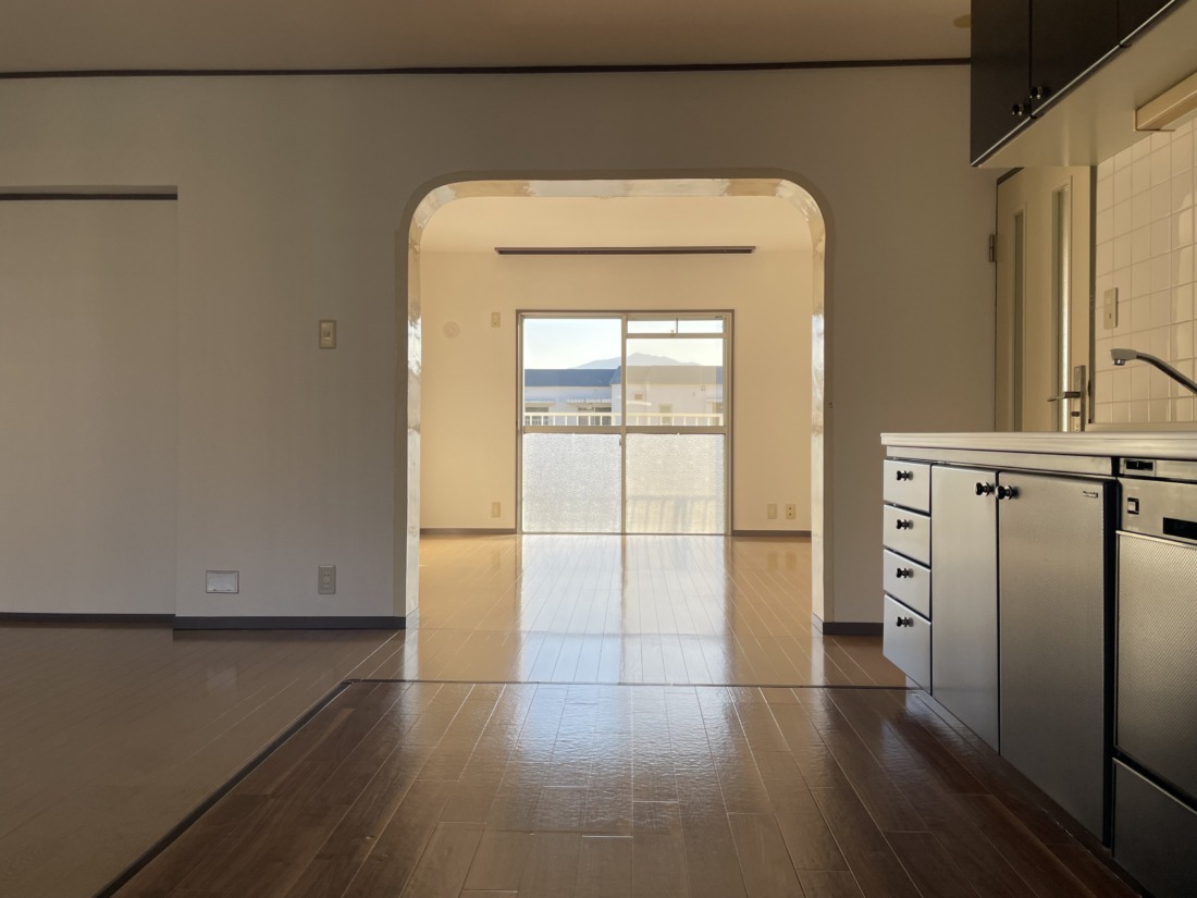 3つの個室に加えて、14帖のダイニングリビング。
