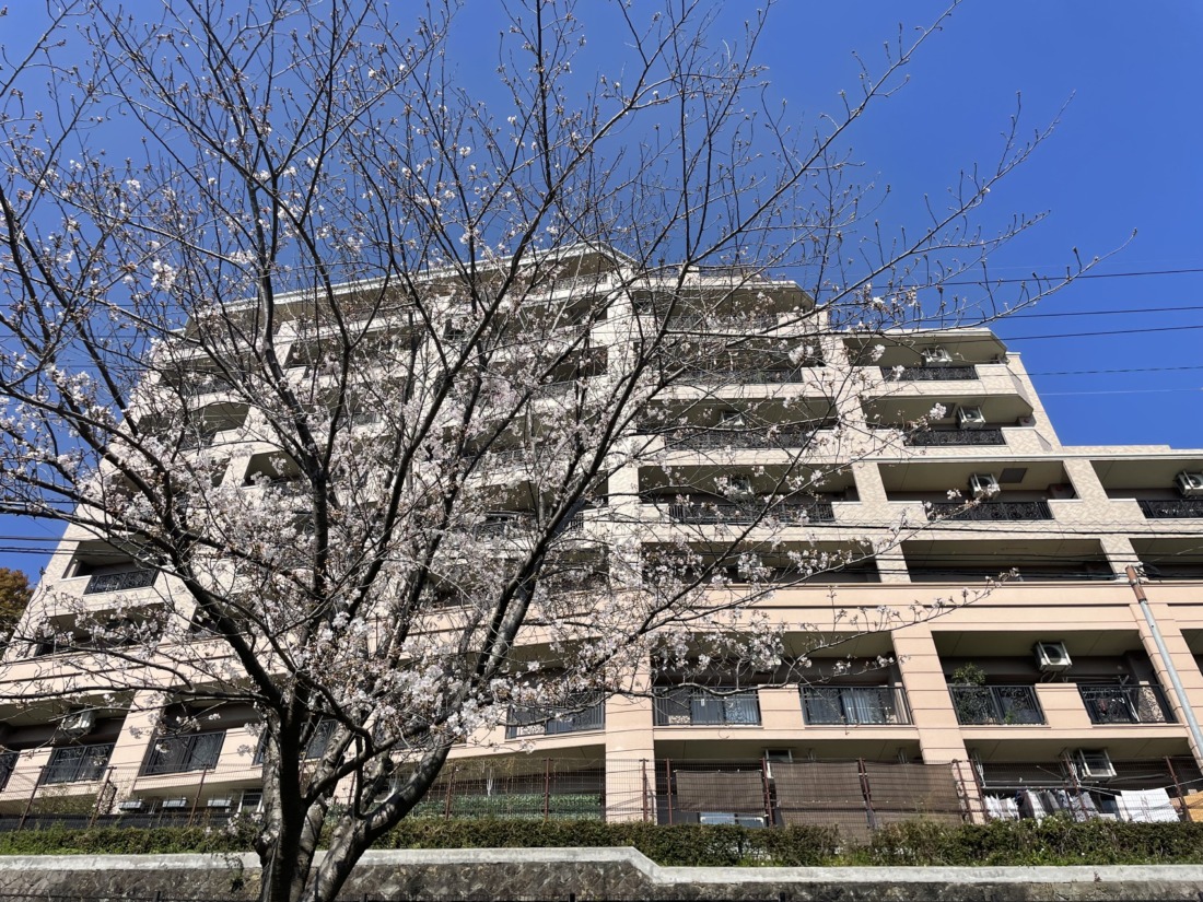 平尾新池を見下ろす位置に建つマンション。